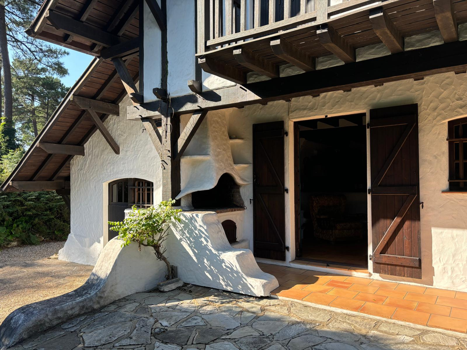 Authentique villa de style landais, la VILLA SANTA CRUZ est édifiée sur une très belle parcelle de 1400 m2 proche du centre-ville d'Hossegor avec un retour sur investissement certain vu l'emplacement. De nombreuses possibilités existent.Aux murs enduits de blancs avec ses belles façades, cette villa orientée plein sud est piscinable.A l'intérieur, on retrouve un beau séjour et la cheminée d'époque avec les rangements enduits de chaux blanches.Décoration et architecture d'intérieure que l'on retrouve aussi dans les chambres avec les niches encastrées dans les murs, les poutres apparentes, les sols d'époque.L'accent est mis sur l'authenticité, ce style de décoration intérieure est idéal pour ceux qui cherchent à préserver un espace chaleureux.